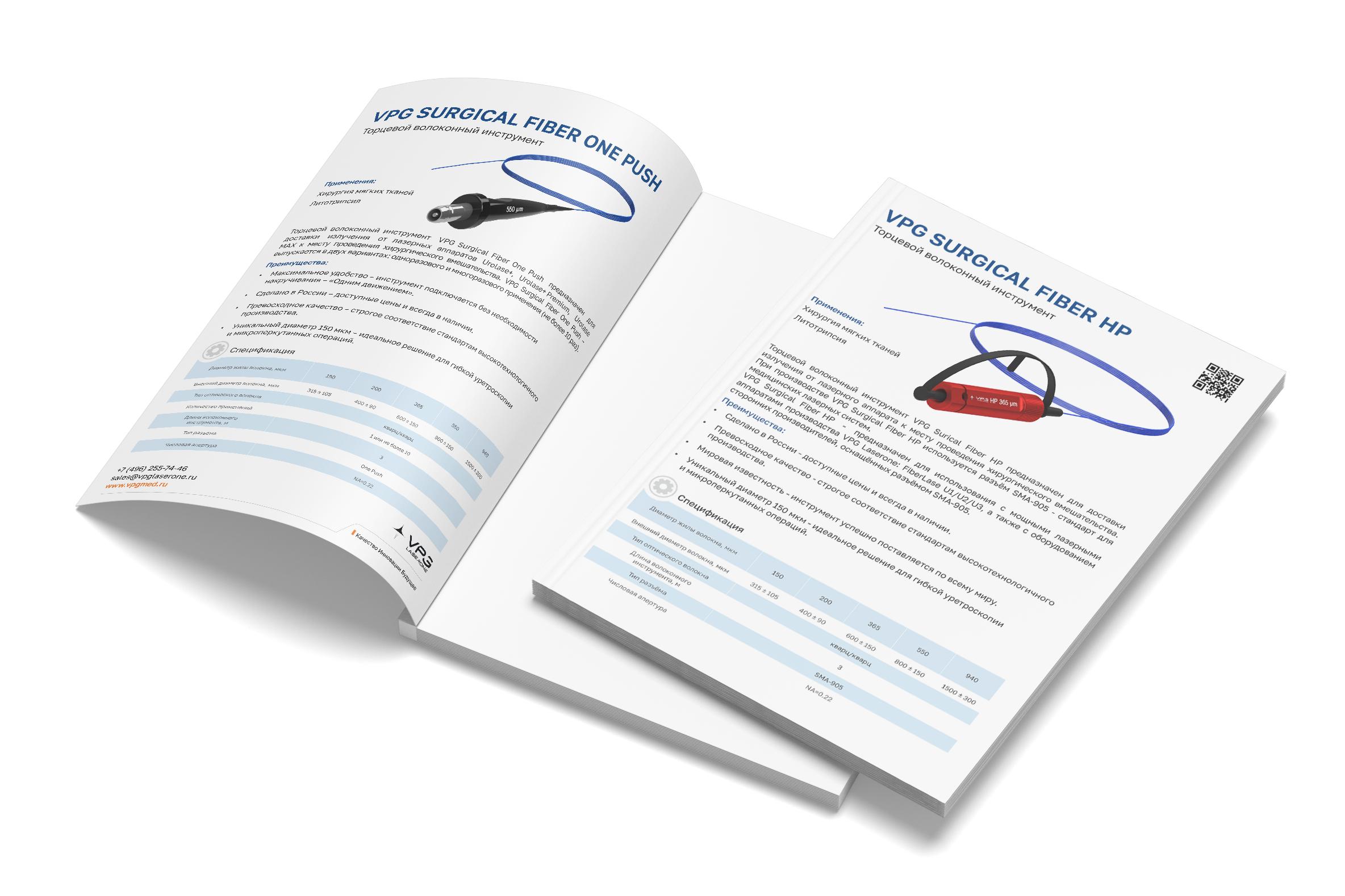 Для использования с гибким эндоскопическим инструментом компанией VPG LaserOne специально разработан волоконный инструмент диаметром 150 мкм, отличительными особенностями которого являются максимальная гибкость, проводимость высоких мощностей, а также лучшее качество эндоскопической картинки за счет более свободной ирригации.